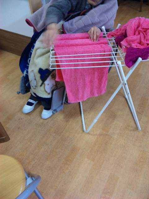 HさんとTさんには洗濯をたたんでもらいました
