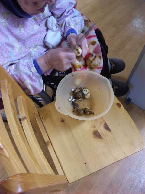 Fさんには里芋の皮むき