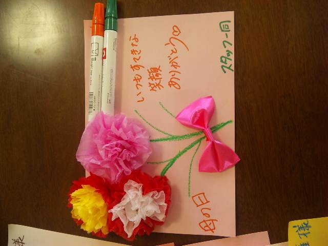 唯一の男性利用者さんのMさんには日ごろの感謝の気持ちとしてお渡ししたら照れ笑い